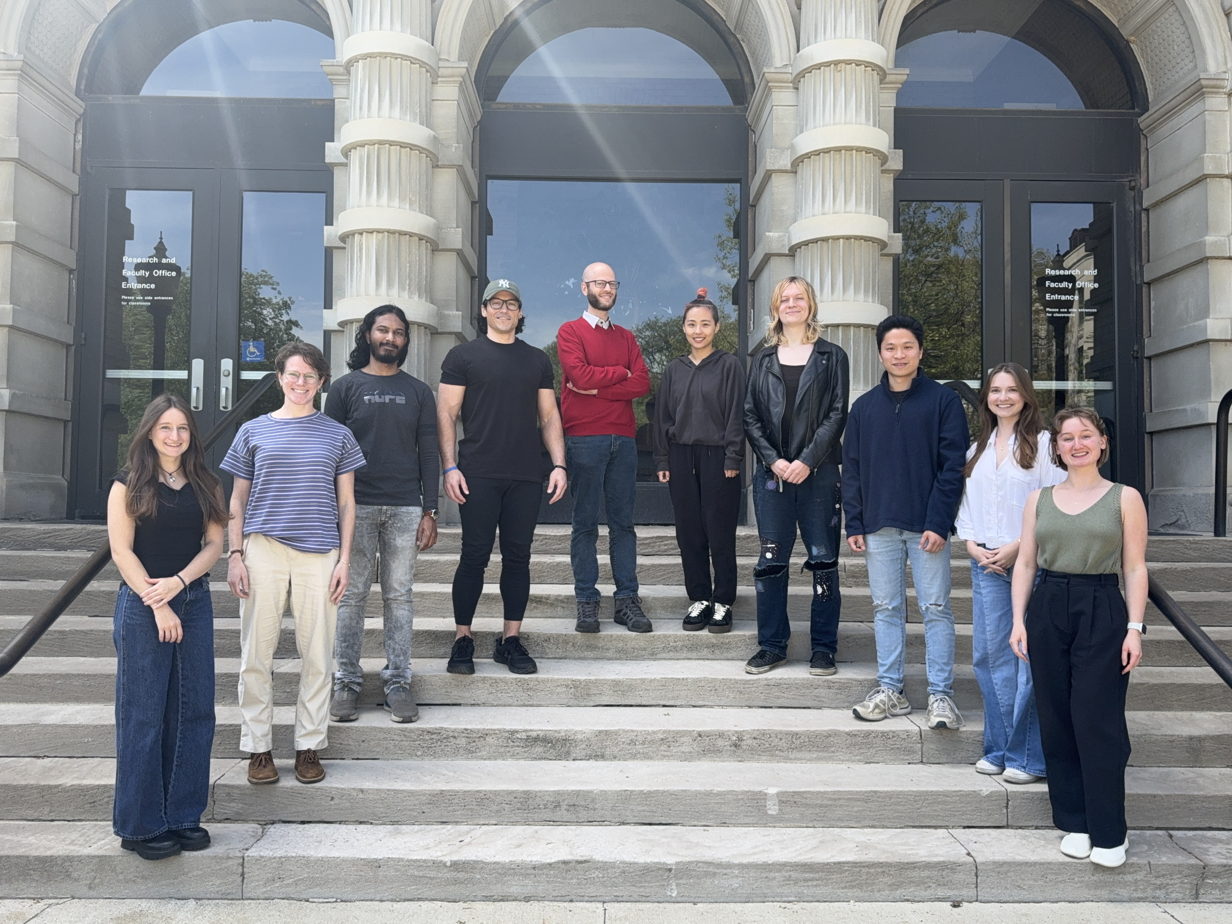 Welcome!Directed by Dr. David Osher, the Cognition and Brain Circuitry Laboratory is based in the Department of Psychology at Ohio State University. We aim to understand the relationship between brain connectivity, function, and behavior, with a special focus on visual perception and attention. We do this through a variety of machine learning techniques, enabling us to use a subject's own, unique brain connectivity pattern, to parcellate their brain into meaningful units, predict how their brains will respond to new stimuli, and even predict their behavior. We use a combination of behavioral assessments, eye-tracking, functional and diffusion neuroimaging, and computational modeling. Meet the lab!From left to right: Sam Froehle, Keara Ginell, Joseph Gera, Derrek Montalvo, David Osher, Yuxuan Zeng, Terra Miller, Isaac Liao, Lily Dettmer, Ren Hentz. Not pictured: Kaushik Yaddanapudi, Bella Brown. |